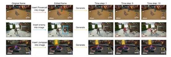 持续性测试则通过在游戏画面中插入新的元素,包括游戏角色、道具或地图等元素,来评估模型是否能够将这些修改融入后续生成的画面中。